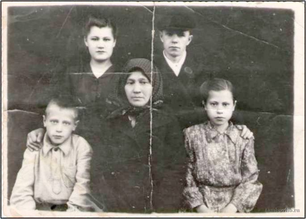 На фото семья фронтовика Тюрина Степана Алексеевича, погибшего 25 января 1944 года в Ленинградской области. В центре - вдова Тюрина Анна Андреевна (1904-1964), стоят - дочь Панкова (Тюрина) Екатерина Степановна, доктор филологических наук; сын Тюрин Василий Степанович, участник ВОВ, служил во флоте с 1944 по 1951 г; сидят - сын Тюрин Владимир Степанович, закончил Тамбовское суворовское училище (1957 г.), в настоящее время пенсионер, дочь - Дружинина Тамара Степановна, ветеран труда, общественница. Фото предоставлено Дружининой Т.С.Добавлена 3 Марта 2015