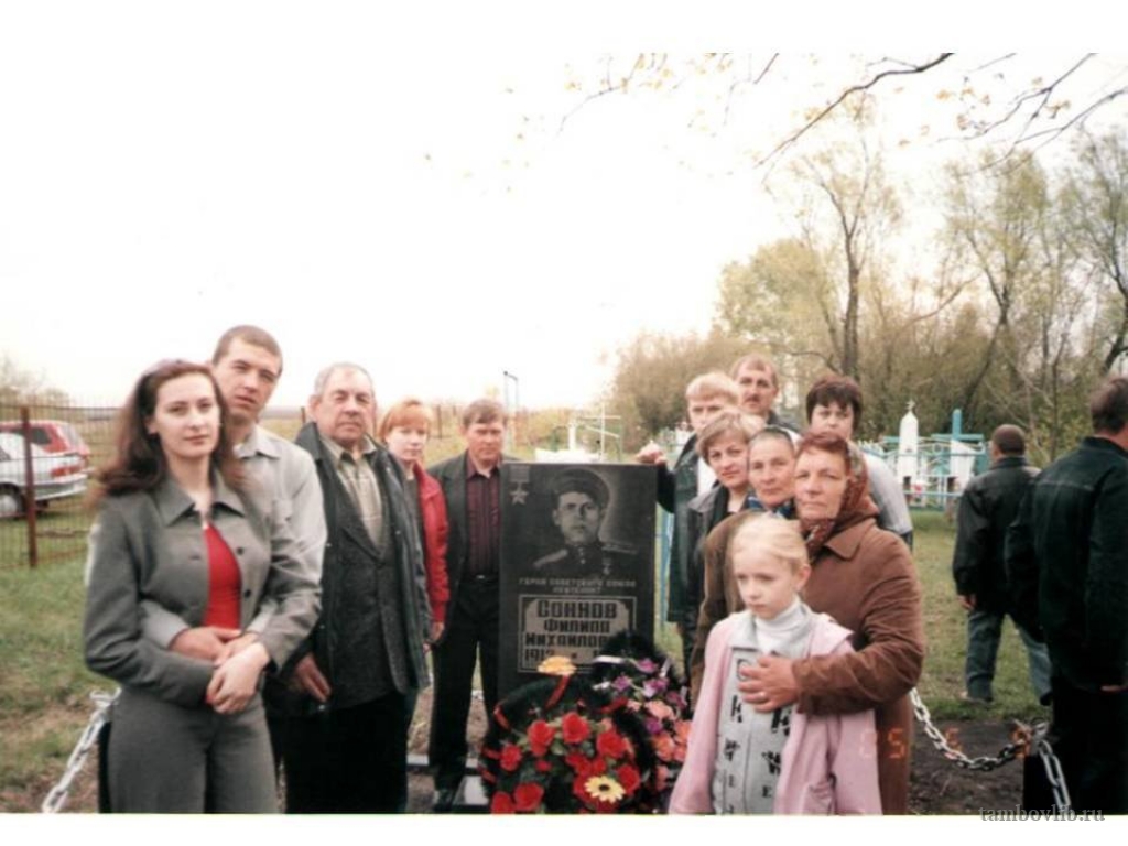Дети, внуки, правнуки Героя Советского Союза Ф.М. Соннова (1912-1947гг.) на его могиле в селе Бибиково.