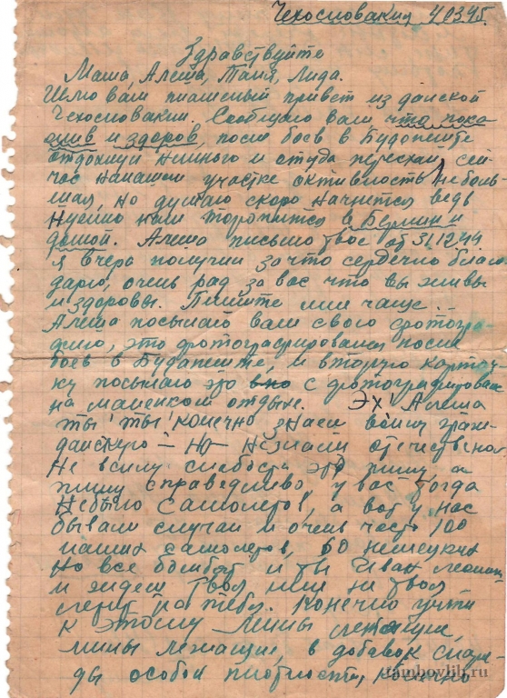 Письмо Пономарева Ивана Яковлевича адресовано родным в с. Знаменка Знаменского района Тамбовской области. Из семейного архива племянницы - Брянкиной Лидии Алексеевны.