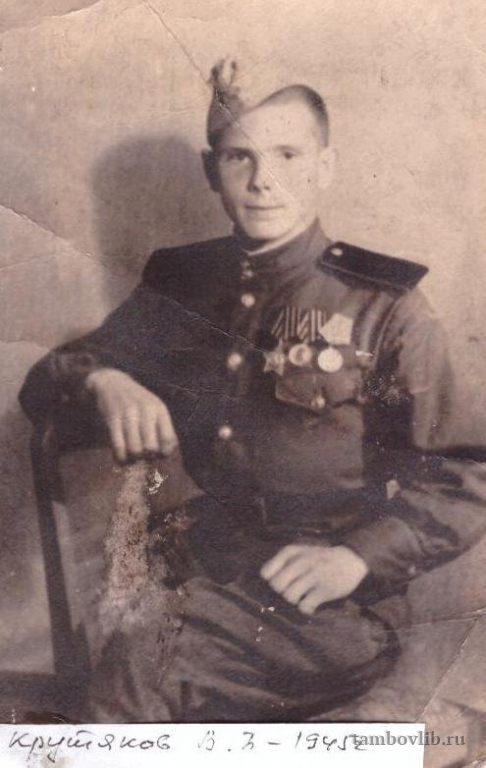 Владимир Петрович,родился 1925г, в с.Екатериновка.Призван в армию в 1943,демобилизован в 1948г. Живет в родном селе.1945 Районная библиотека Кирсановского района Портрет