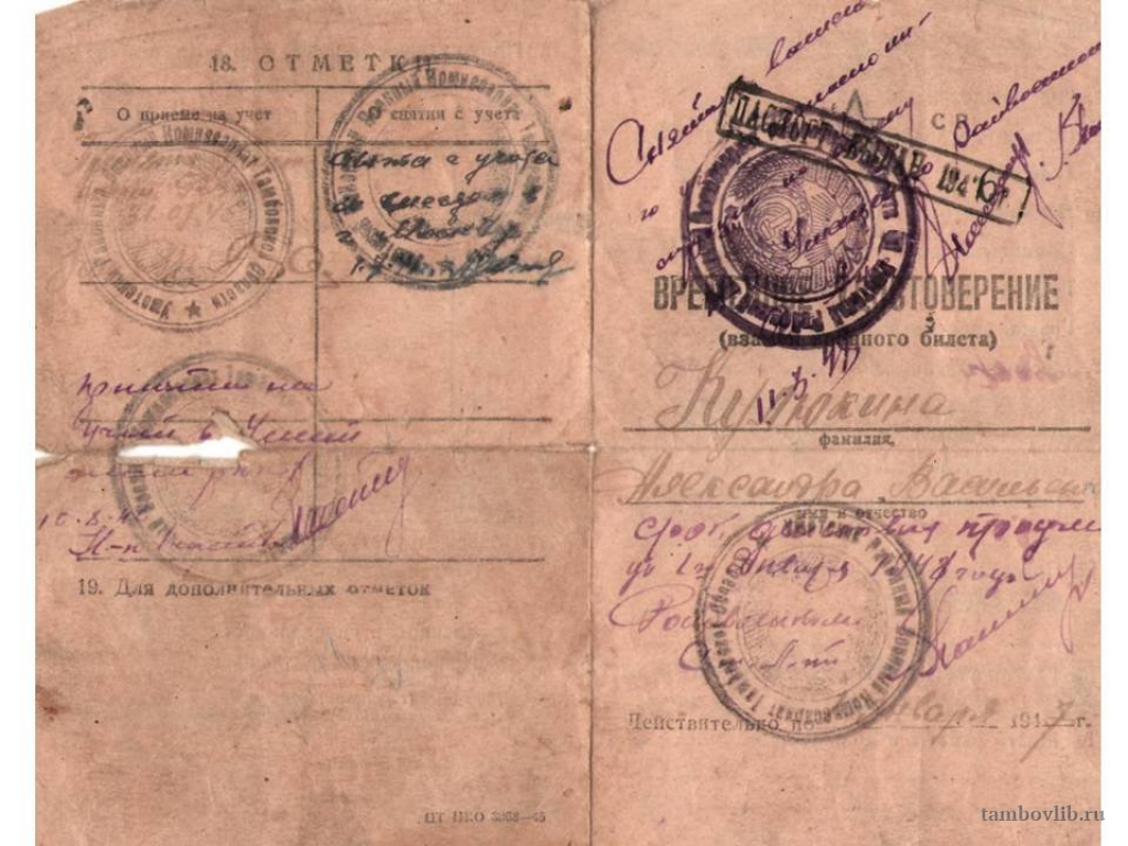 Временное удостоверение (взамен военного билета) 1943 год