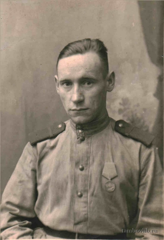 Родился 14.06.1918. Родился в г. Тамбове. Состоял на военной службе с ноября 1939 г. по март 1948 г. Награжден орденом Отечественной войны II степени, медалью «За боевые заслуги». Служил в звании ефрейтора. Умер 9.12.1995 г.15 декабря 1944 ТОУНБ Портрет Рига, Латвия