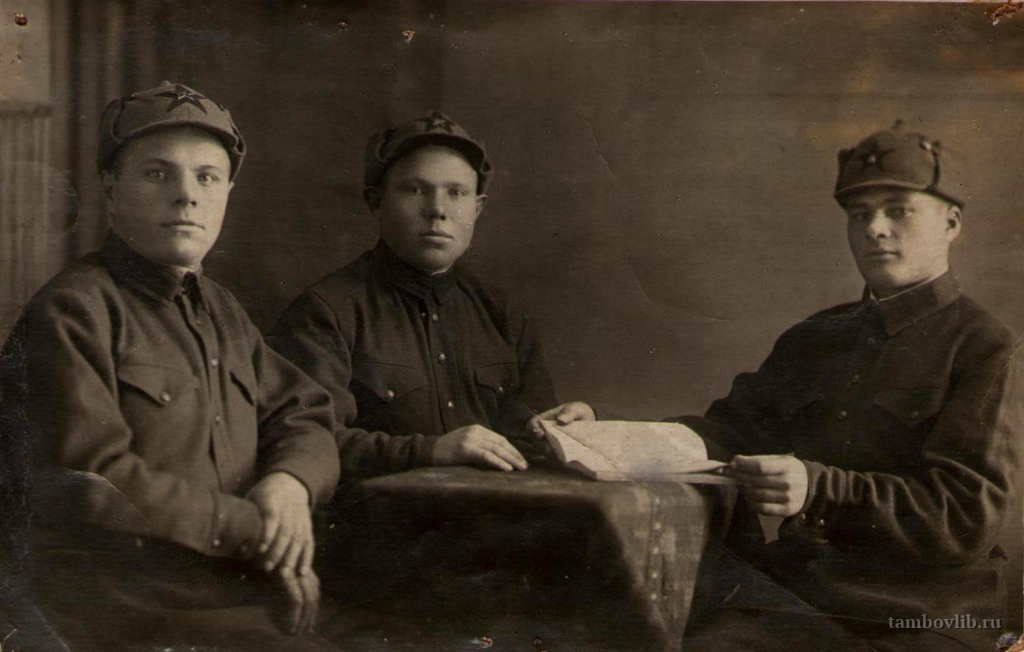Фотография сделана во время действительной службы Солопова Семена Григорьевича (слева) в рядах Красной Армии. Родился в с. Вторая Иноковка Кирсановского района. Участник Великой Отечественной войны,танкист, пропал без вести. Фотография из семейного архива жительницы р. п. Инжавино Малиной Марии Ивановны. Солопов С. Г. - ее дядя.Межпоселенческая центральная библиотека Инжавинского района Портрет