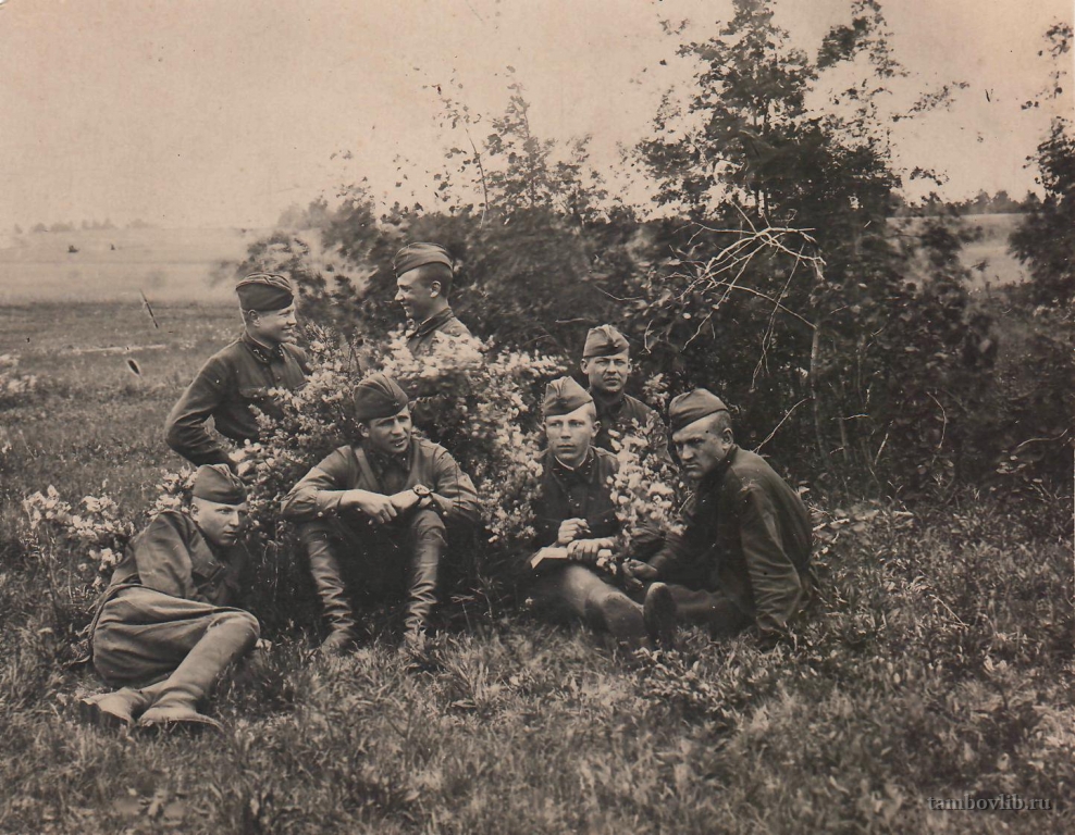 Шимкович Владислав Борисович (стоит слева) на полевых учениях во время прохождения срочной службы. Город Гороховец Горьковской области.1940 Знаменская ЦБС Портрет г.Гороховец Горьковской области