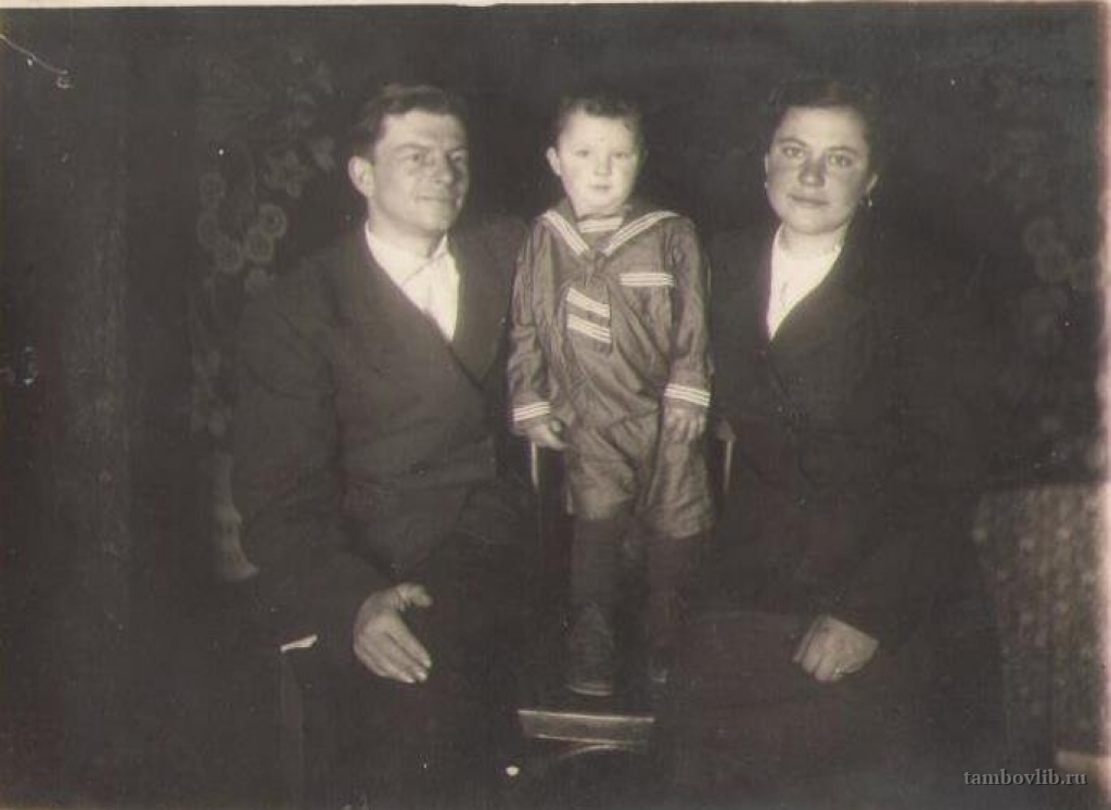 Жители села Хренное - участник войны Рощупкин Николай Аендреевич с женой Александрой и сыном Владимиром.1951 Межпоселенческая централизованная библиотека Петровского района Семейное