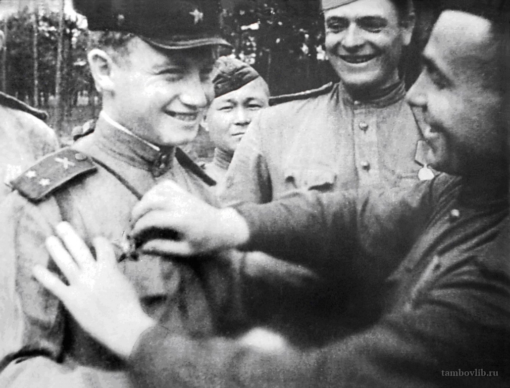 Вручение ордена “Красной Звезды” старшему лейтенанту Зиновию Борисовичу ГАУХМАНУ командиром бригады полковником Ивановым за участие в обороне Москвы. 1941 год.