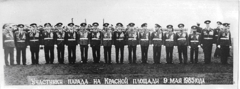 Участники парада Победы на Красной площади в Москве 9 мая 1985 г. ПОПОВ Анатолий Дмитриевич (четвертый слева) - Кавалер ордена Славы трех степеней. Воевал в воздушно-десантной бригаде 114-ой Гвардейской Краснознаменной ордена Суворова стрелковой дивизии.