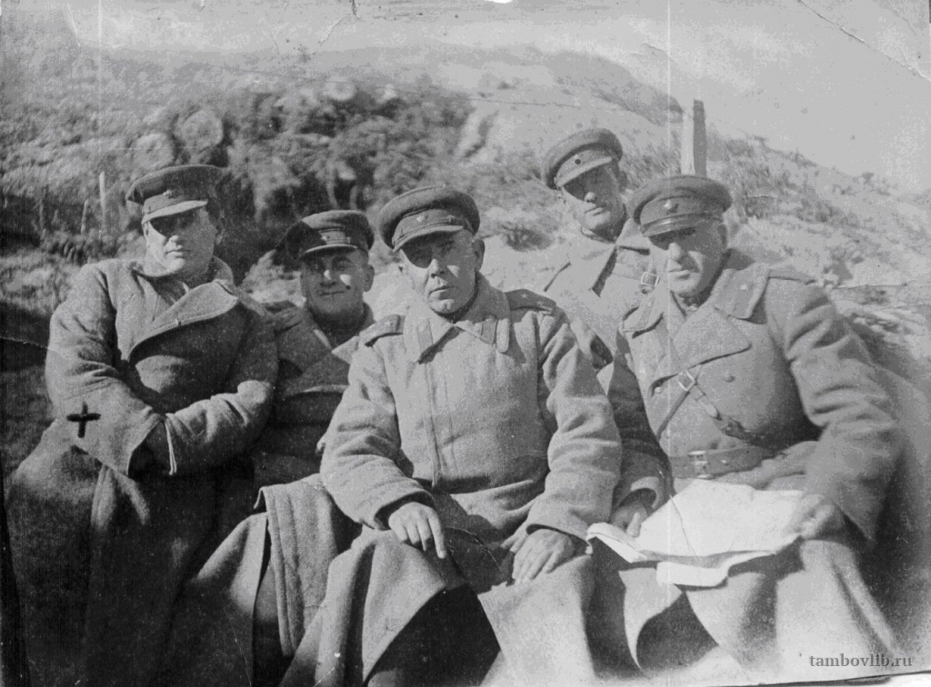 Штаб 81-й Гвардейской стрелковой дивизии с командиром НИКОЛАЕВЫМ Сергеем Григорьевичем (в центре) обсуждают дальнейший план действий после форсирования Днепра.