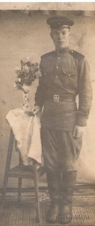 Солопов Александр Иванович родился в 1929 году, с. Андреевка, Тамбовской области, Мучкапского района. Фото из семейного архива дочери Борцовой Натальи Александровны.1950 Центральная библиотека Мучкапского района Портрет