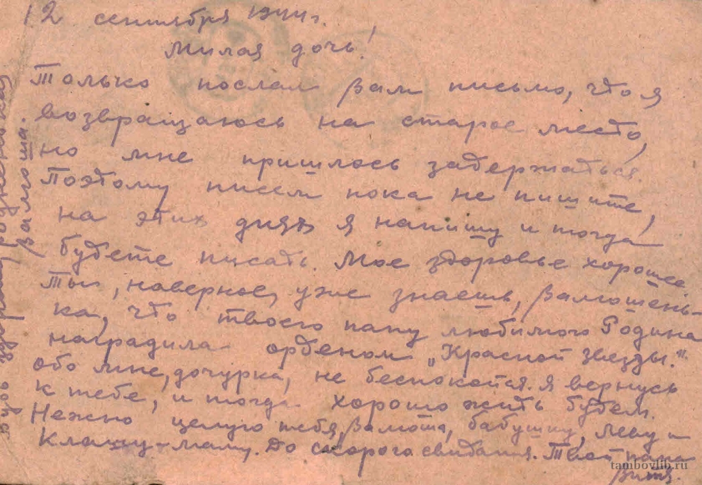 12 сентября 1944 ТОУНБ Письмо