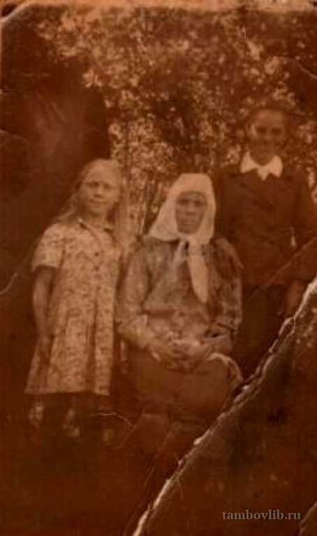 Жительница с. Паревка Инжавинского района Старкова Александра Степановна с дочерьми Машей и Юлей1950 Межпоселенческая центральная библиотека Инжавинского района Семейное