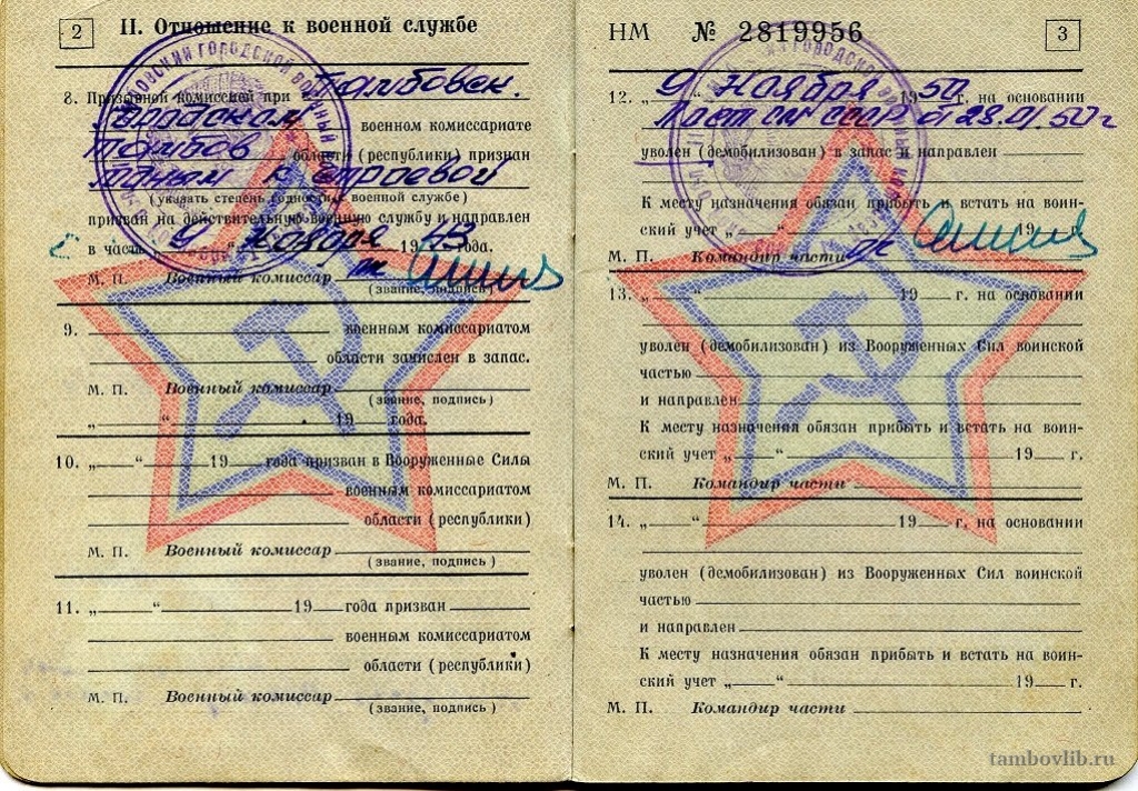 Военный билет Назарова Михаила Петровича