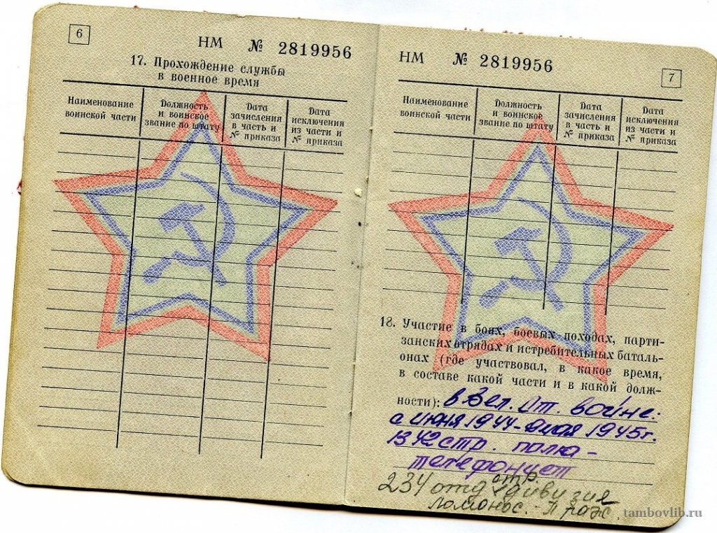 Военный билет Назарова Михаила Петровича