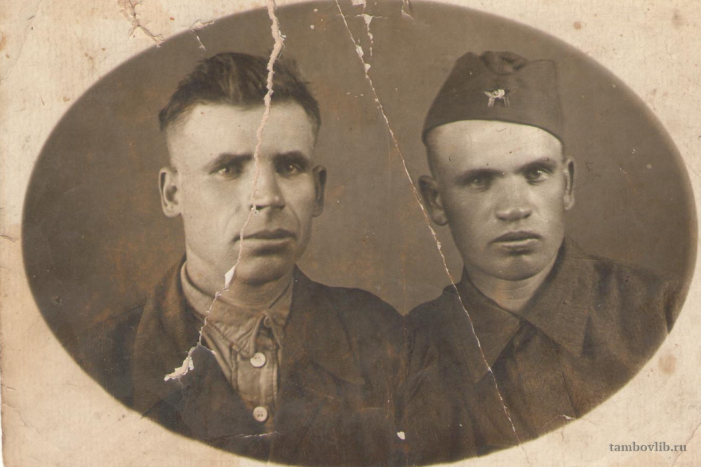 Ермаков Григорий Николаевич и Ермаков Иван Николаевич (погиб на Курской дуге). Фото сделано во время войны. Фотография из семейного архива Ифтоди Ольги Федоровны1942 Межпоселенческая библиотека Староюрьевского района Семейное