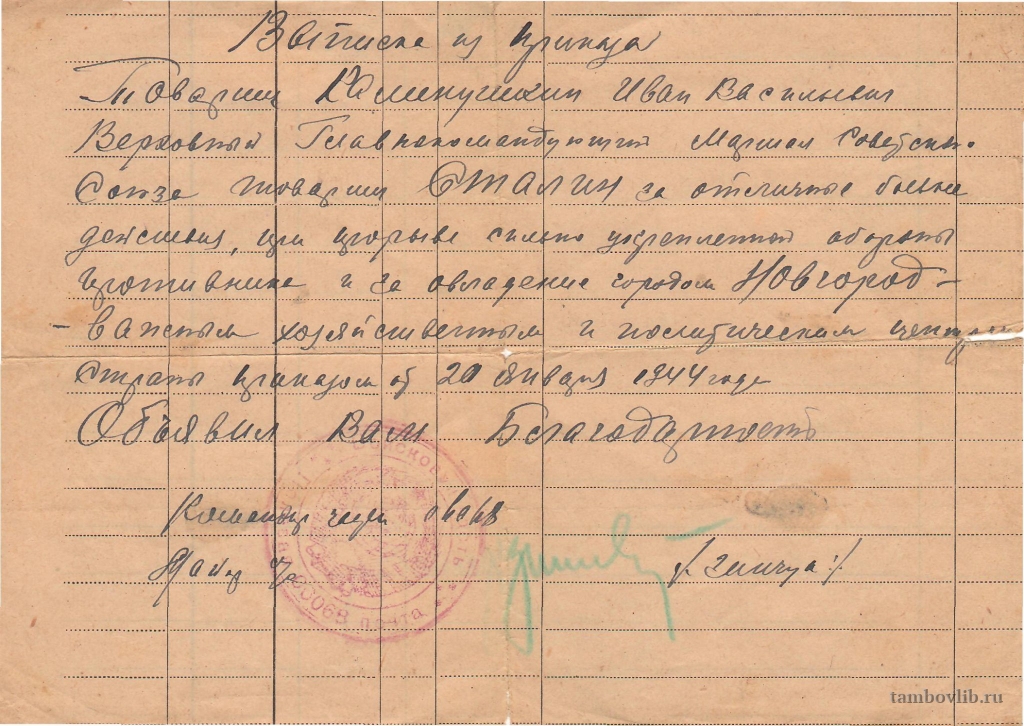 Из личного архива Крыковой Людмилы Ивановны, внучки Калинушкина Ивана Васильевича.