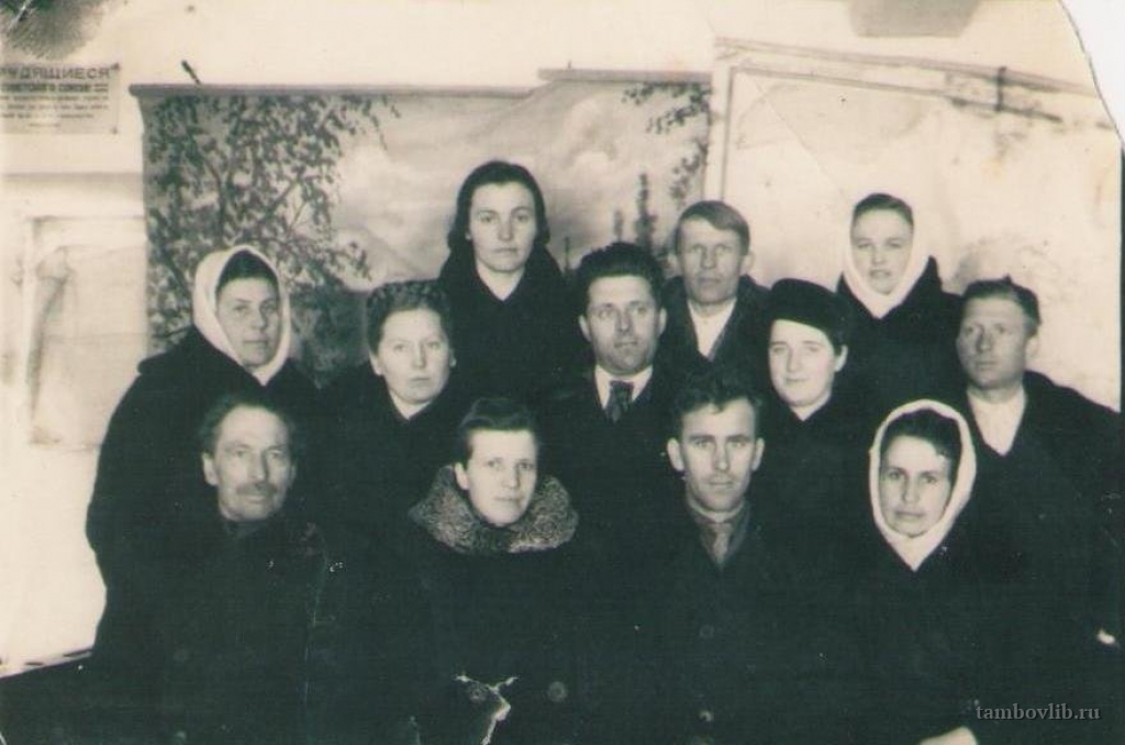 Тепловодская Клавдия Ивановна, Кудрявц Галина Михайловна, Сергеев Николай Николаевич, Крейдо Мария Дмитриевна, Чернышова Галина Антоновна, Решетников Иван Иванович, Мухортова Мария Ивановна1950 Межпоселенческая централизованная библиотека Петровского района Портрет Красиловка, Тамбовская область, Россия, 393082