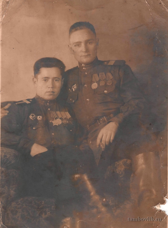 Родился 16 мая 1923 года в с. Туголуково Жердевского района Тамбовской области. Призван а армию в октябре 1941 года. Воевал на Калининградском фронте в должности радиста. Был ранен. После лечения направлен на Сталинградский фронт. Воевал под Курском и Орлом, на 2-м Белорусском фронте. Дошел до Берлина. Награжден многими боевыми орденами и медалями. В 1952 году, вместе с присвоением звания младшего лейтенанта, был призван в кадры Вооруженных Сил и направлен в Бакинский военный округ ПВО на границу с Ираном. В 1956 году вернулся на родину и работал на партийно-хозяйственной работе. Скончался 15 ноября 2003 года. Фото из семейного архива дочери - Ширяевой Раисы Николаевны.07 февраля 1946 Знаменская ЦБС Портрет