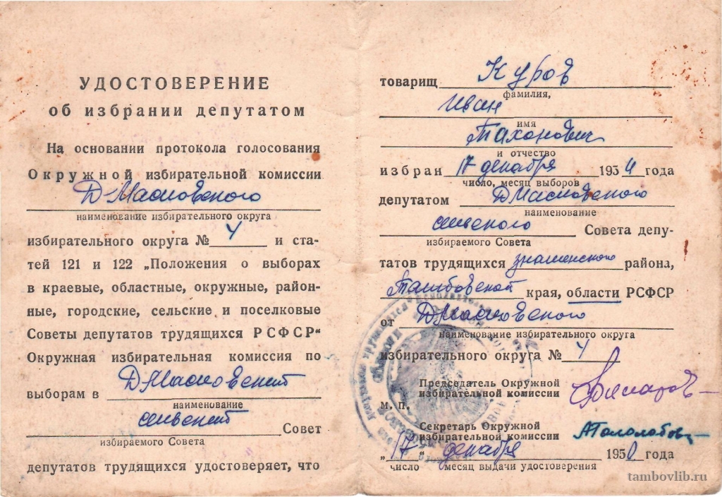 Удостоверение об избрании депутатом