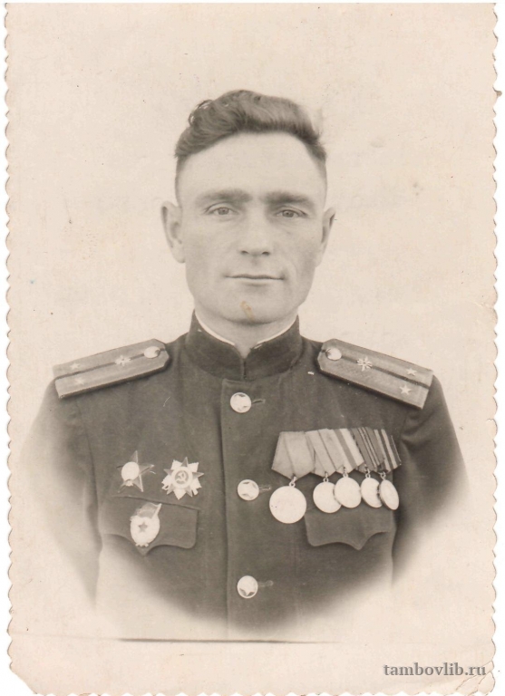 Родился 16 мая 1923 года в с. Туголуково Жердевского района Тамбовской области. Призван а армию в октябре 1941 года. Воевал на Калининградском фронте в должности радиста. Был ранен. После лечения направлен на Сталинградский фронт. Воевал под Курском и Орлом, на 2-м Белорусском фронте. Дошел до Берлина. Награжден многими боевыми орденами и медалями. В 1952 году, вместе с присвоением звания младшего лейтенанта, был призван в кадры Вооруженных Сил и направлен в Бакинский военный округ ПВО на границу с Ираном. В 1956 году вернулся на родину и работал на партийно-хозяйственной работе. Скончался 15 ноября 2003 года. Фото из семейного архива дочери - Ширяевой Раисы Николаевны.Добавлена 13 Марта 2015