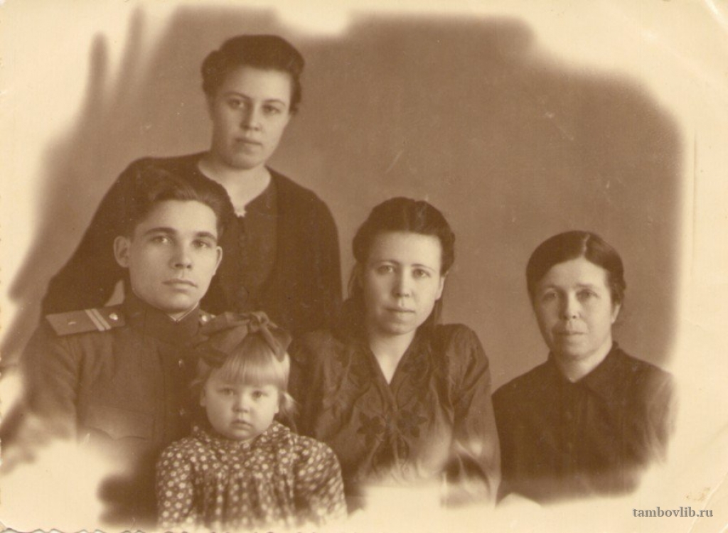 Родился 08.08.1919 г. Участник ВОВ, младший сержант, служил в связи. Имел одну из наград «За боевые заслуги». Призывался в Пензенской области, после войны долго жил в г. Кирсанове. Умер 28.10.2001 г. На фото слева на право: Виктор Кузьмич Уткин; дочь Уткина В.К. - Уткина Галина Викторовна; первая супруга Уткина В.К. - Уткина (Баусова) Раиса Аркадьевна(01.07.1924-26.09.2010) работница тыла (по рассказам рыла окопы под Смоленском); мать Уткиной Р.А. - Баусова Просковья Архиповна (18.07.1901-12.07.1982); наверху сестра Уткиной Р.А. - Бочарова (Баусова) Любовь Аркадьевна (20.08.1926-11.09.2011) работница тыла, во время ВОВ работала в Тамбове на производстве, очень часто от производства отправляли на дежурство на крышах зданий и домов, чтобы снимать «дымовухи», которые бросали с самолетов на жилые и административные здания, чтобы не было возгорания.Добавлена 13 Марта 2015
