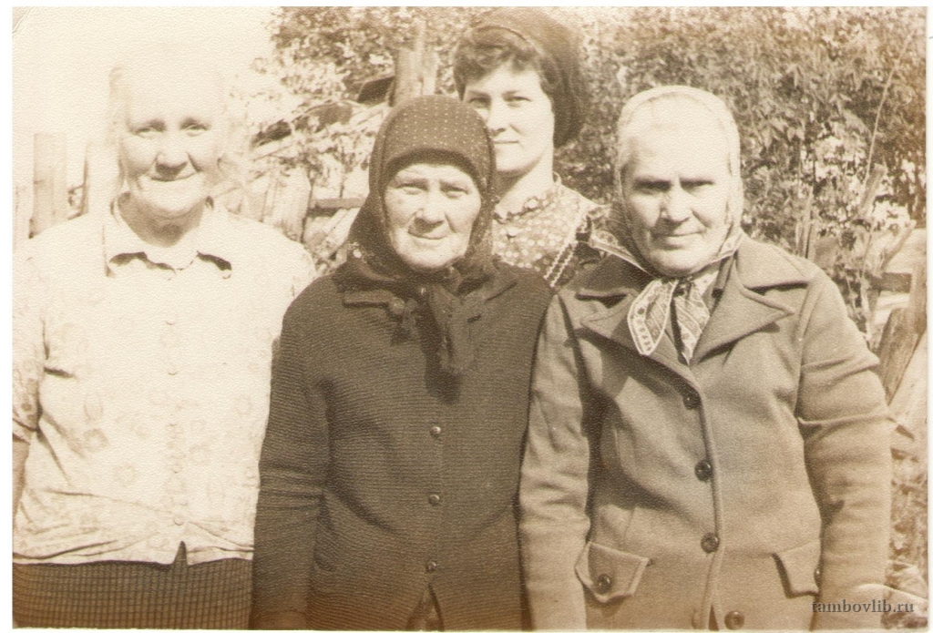 Чурилова Наталия Ивановна, 1913 года рождения (стоит в середине) -труженица тыла; Дякина Акулина Ивановна , 1917 года рождения(справа) - во время войны копала окопы; Дякина Анна Ивановна (слева) - участница Великой Отечественной войны, во время войны служила санинструктором, призвана в 1941 году, демобилизована в 1945 году.Центральная библиотека Мучкапского района Семейное