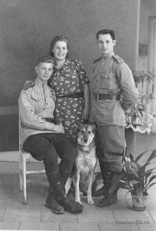 Родился 20 апреля 1915 г. в с. Сухотинка Знаменского района Тамбовской области. Служил сапером, занимался подготовкой собак для подрыва танков. Ушел рядовым, вернулся с войны старшим лейтенантом. На фото крайний справа.