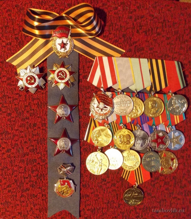 Родился 20 апреля 1915 г. в с. Сухотинка Знаменского района Тамбовской области. Служил сапером, занимался подготовкой собак для подрыва танков. Ушел рядовым, вернулся с войны старшим лейтенантом. На фото ордена и медали.