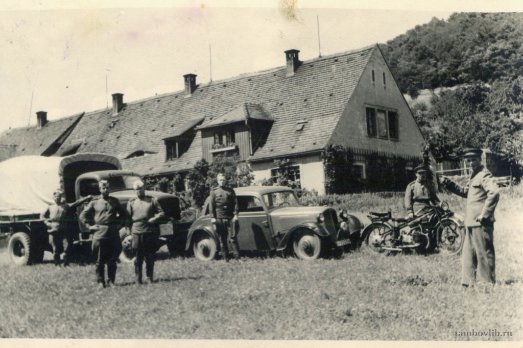 Родился 16 апреля 1910 г. в с. Пановы Кусты Сампурского района Тамбовской области. Призван по мобилизации Сампурским Р.В.К. Тамбовской области и зачислен в 656-й полк тяжелых истребителей танков – телефонистом с 06 августа 1941 по 14 февраля 1943 гг. Получив ранение в правую руку, находился в эвакогоспитале №2648 на излечении. С 08 ноября 1943 по 25 октября 1945 гг. воевал в 21 автополку – шофером. Дошел до Германии. Награжден орденом Отечественной войны I степени, медалью «За победу над Германией в ВОВ 1941-1945 гг.», юбилейными медалями за доблесть и отвагу. Умер 6 декабря 1981 г.15 июля 1945 ТОУНБ Портрет Дрезден, Германия