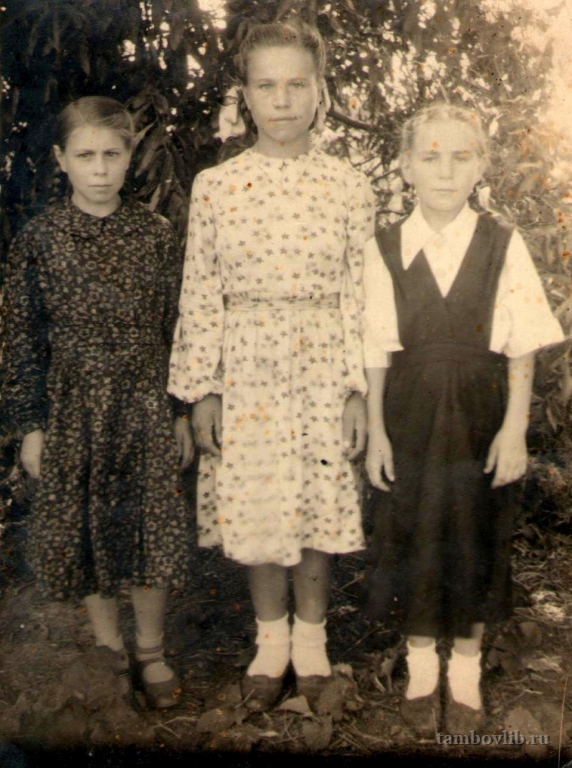 Мария Петровна Калошина (Воропаева) из с. Кулевча Инжавинского района с подругами. Фотография предоставлена библиотекарем филиала Марьевский Зарецкой Любовью Алексеевной.1953 Межпоселенческая центральная библиотека Инжавинского района Портрет