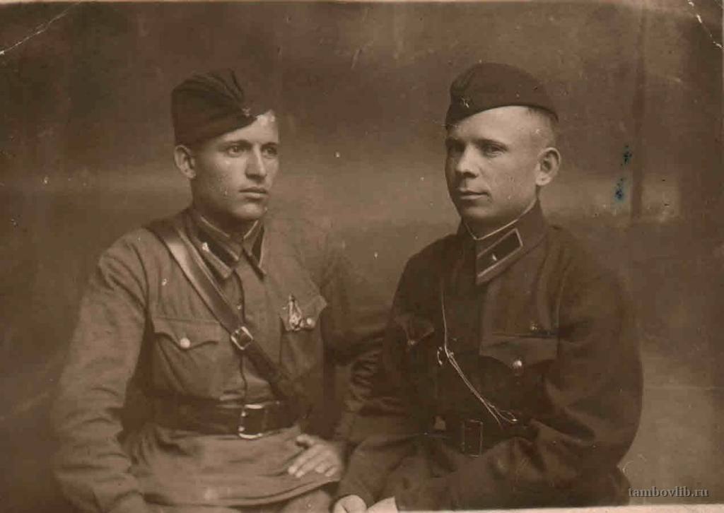 Родился в 1913 г. в д. Никольское Волчковского (Петровского) района Тамбовской области. С 1939 г. служил на Западной Украине на границе с Польшей, в г. Злочев Львовской области. Там его и застала война. Он был младшим лейтенантом танкового взвода, который принял первый бой с фашистами 22 июня 1941 г.: танковая колонна фашистов прорвалась на львовском направлении. Пропал без вести в 1944 г. Награжден медалью «За боевые заслуги». На фото - справа.Добавлена 15 Марта 2015