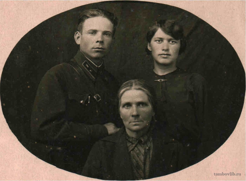 Родился в 1913 г. в д. Никольское Волчковского (Петровского) района Тамбовской области. С 1939 г. служил на Западной Украине на границе с Польшей, в г. Злочев Львовской области. Там его и застала война. Он был младшим лейтенантом танкового взвода, который принял первый бой с фашистами 22 июня 1941 г.: танковая колонна фашистов прорвалась на львовском направлении. Пропал без вести в 1944 г. Награжден медалью «За боевые заслуги». На фото с женой Воронковой Раисой Николаевной и матерью Воронковой Аграфеной Фроловной.Добавлена 15 Марта 2015
