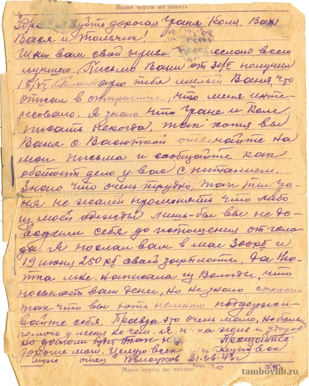 Письмо с фронта родным от Елсукова Владимира Александровича