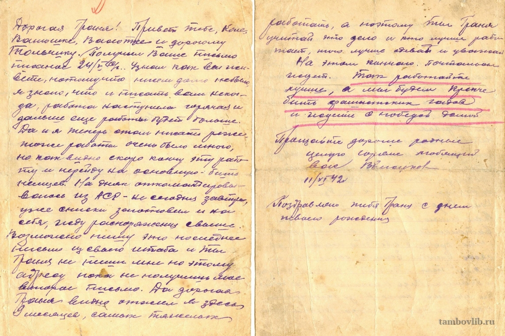 Письмо родным с фронта от Елсукова Владимира Александровича