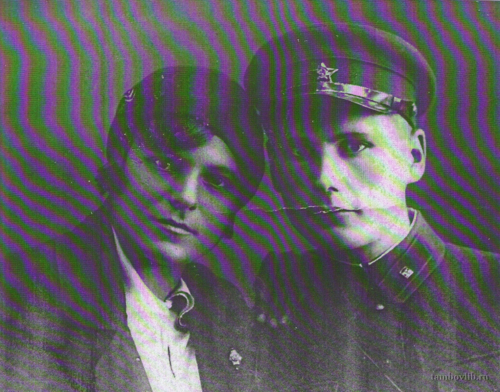 Родился в 1913 году , с. Подгорное, Воронежская область. Участник Великой Отечественной войны, летчик, погиб под Могилевом в 1941 году. На фото с супругой Татьяной. Фото из семейного архива Копиной Лидии Алексеевны.Центральная библиотека Мучкапского района Семейное