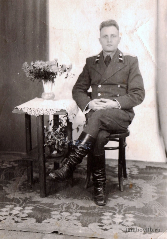 Родился 05 октября 2020 г. в с. Григорьевка Пичаевского района Тамбовской области. В августе 1940 г. был призван Пичаевским райвоенкоматом Тамбовской области в ряды Красной Армии на срочную службу в Закавказский Военный Округ, г. Баку. С 05.10.1940 г. служил рядовым красноармейцем, а затем ефрейтором 513-го Зенитного артиллерийского полка 3-го корпуса ПВО. С мая 1942 по август 1943 г. служил на должностях сержантского состава – командиром орудия 513-го Зенитного артиллерийского полка, входящего в Бакинскую Армию ПВО. Далее – до августа 1945 г. – командиром орудия 2-го дивизиона 130 Отдельной Зенитной Артиллерийской бригады ПВО. Имеет 15 Правительственных наград, в том числе Ордена: «Красной Звезды», «Отечественной Войны II степени». Медали: «За оборону Кавказа», «За боевые заслуги» (2 медали), «За победу Над Германией» и другие. Умер 18 мая 1993 г. в возрасте 72 лет, похоронен в р.ц. Пичаево Тамбовской области.1950, октябрь ТОУНБ Портрет Германия