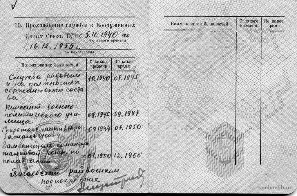 Военный билет Карцева Федора Андреевича
