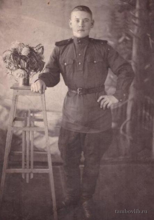 Родился в 1926г. с.Голынщина кирсановского района. Призван в армию в1943г., демобилизовался в 1946г. Ст. сержант.1946 Районная библиотека Кирсановского района Портрет