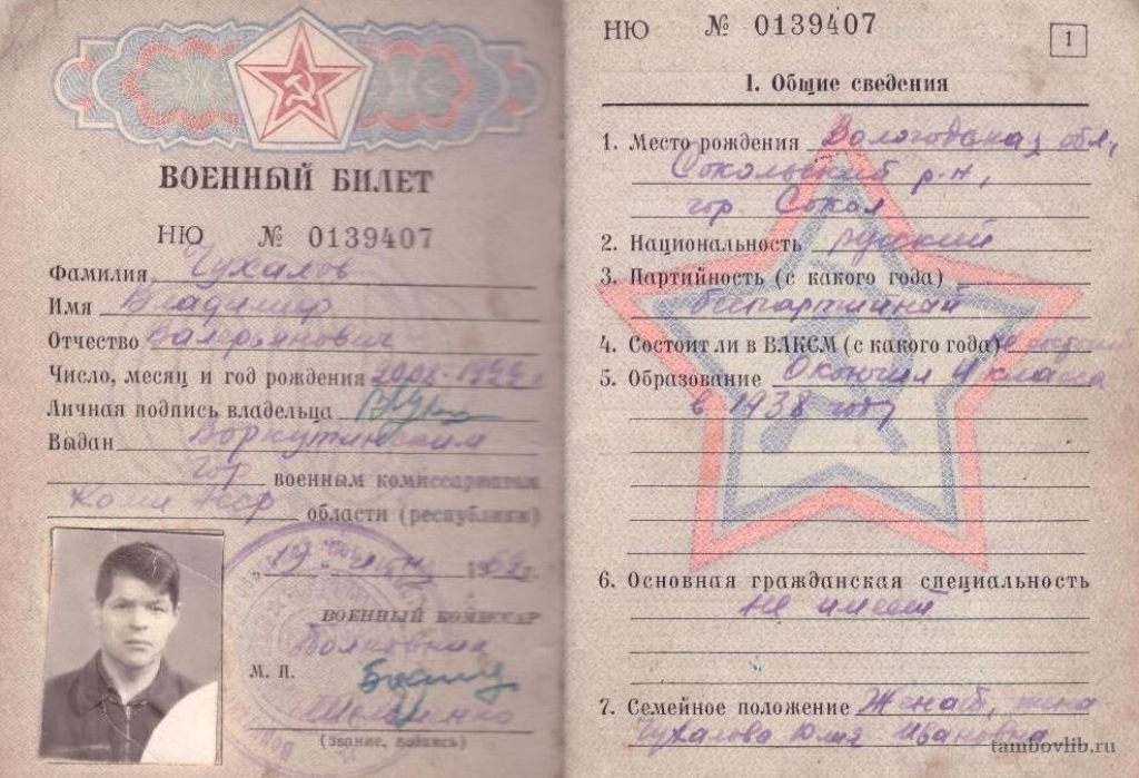 Чухалов Владимир Валерьевич. Военный билет.