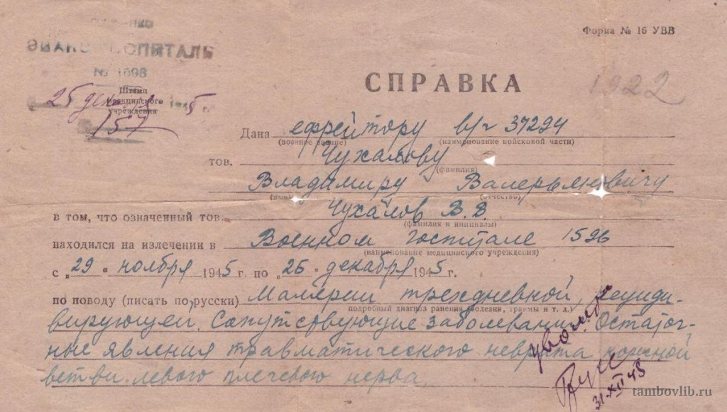Справка из военного госпиталя