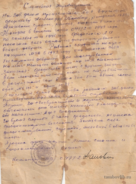 Служебная характеристика на зав. делопроизводством Федосееву Александру Ивановну