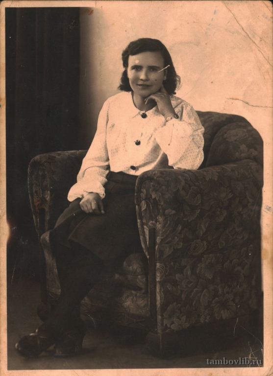 Плахина (Ахматова) Евдокия Афанасьевна родилась в Ростошах Воронежской области 25 февраля 1915 г. Фотография сделана в городе Бунцлау в Германии — ныне город Болеславец, Польша.22 сентября 1945 ТОУНБ Портрет Болеславец, Польша