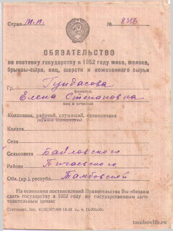 Из семейного архива Гундосовых.1938 Межпоселенческая центральная библиотека Пичаевского района Документ