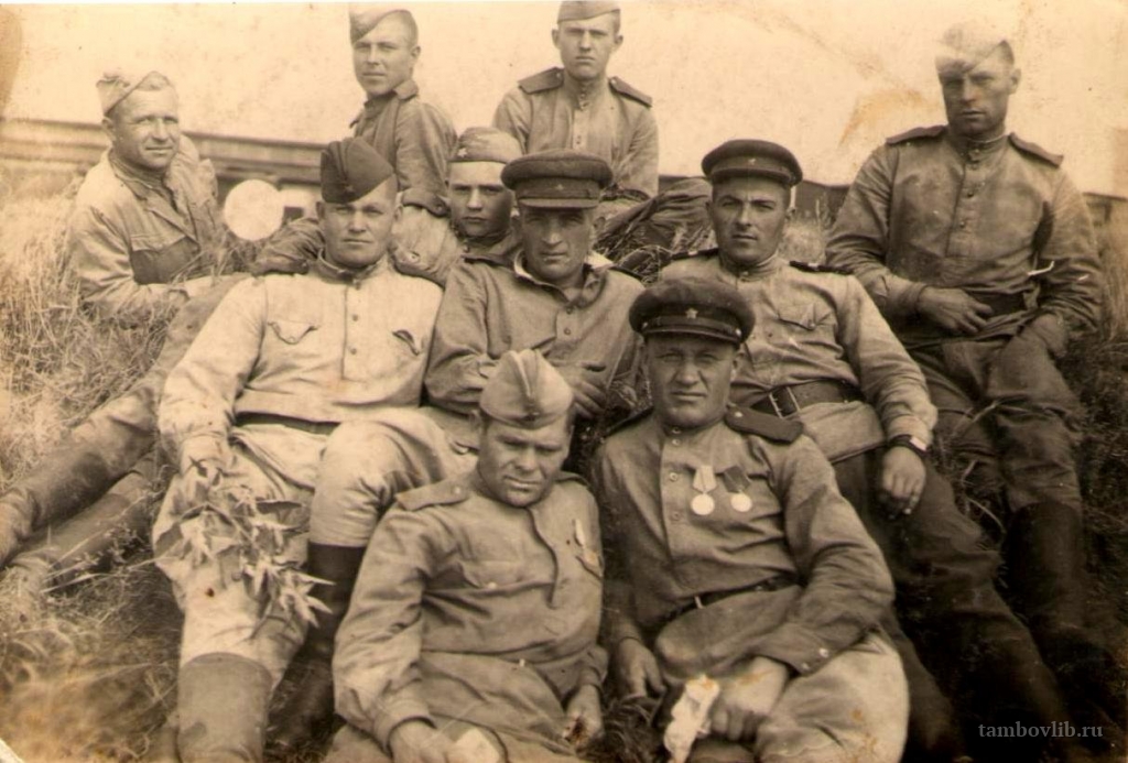 Чижиков Федор Филиппович (в третьем ряду справа) - участник Великой Отечественной войны. Родился в 1910 году в д. Якутино Инжавинского района. Призван в армию в 1941, демобилизован в 1945 году. Сержант. Награжден орденом "Красной Звезды" и шестью медалями. После войны жил и работал в р. п. Инжавино. Фотография предоставлена дочерью Начинкиной Надеждой Федоровной.Межпоселенческая центральная библиотека Инжавинского района Военные действия