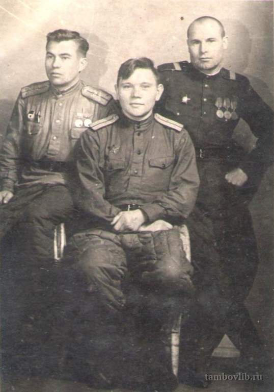 Чижиков Федор Филиппович (стоит справа) - участник Великой Отечественной войны. Родился в 1910 году в д. Якутино Инжавинского района. Призван в армию в 1941, демобилизован в 1945 году. Сержант. Награжден орденом "Красной Звезды" и шестью медалями. После войны жил и работал в р. п. Инжавино. Фотография предоставлена дочерью Начинкиной Надеждой Федоровной.Межпоселенческая центральная библиотека Инжавинского района Портрет
