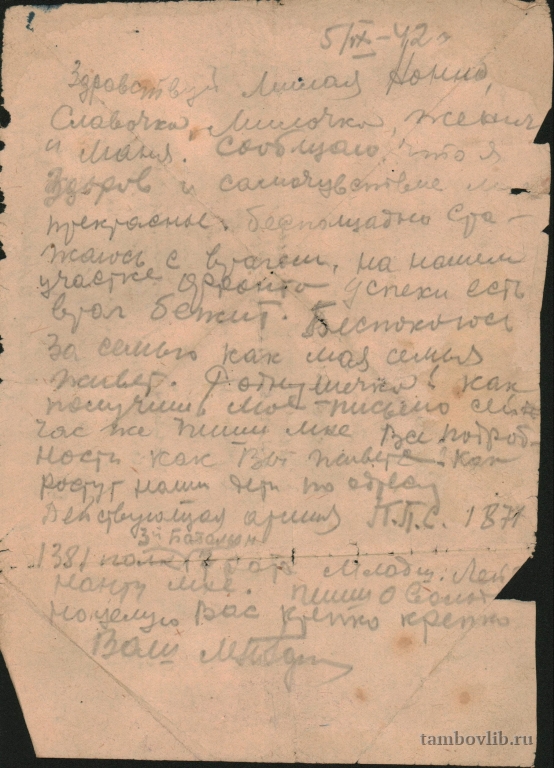 05 сентября 1942 ТОУНБ Письмо