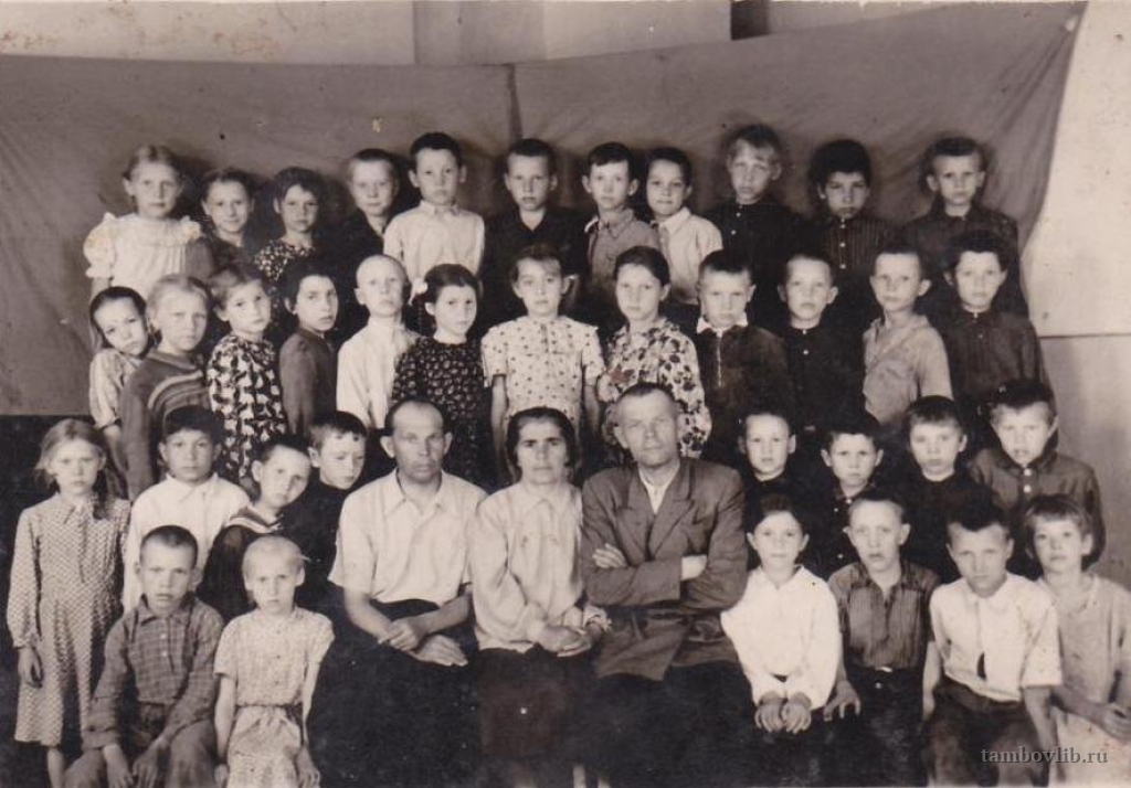 Учащиеся Коноплянской школы с учителями Юмашевым Николаем Васильевичем (слева) и Финаевым Федором Михайловичем1950 Межпоселенческая центральная библиотека Инжавинского района Портрет