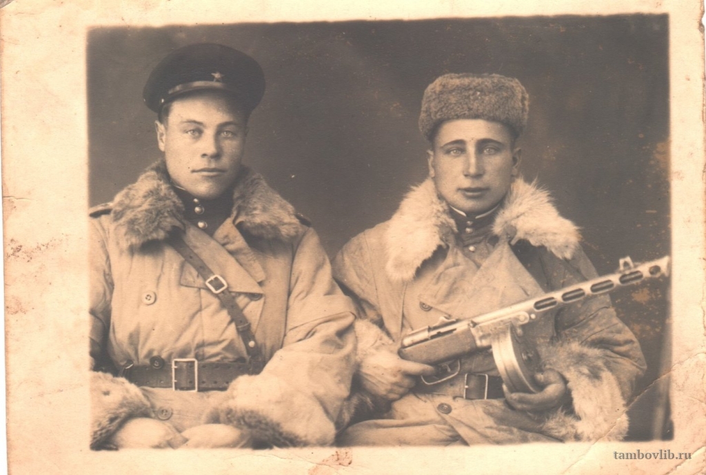 1923-1999.Капитан Артиллерии. Рядом боевой товарищ, старший сержант Щербаков( имя не известно)03 декабря 1945 Межпоселенческая центральная библиотека Сосновского района Портрет Маньчжурия, Хулун-Буир, Внутренняя Монголия, Китай