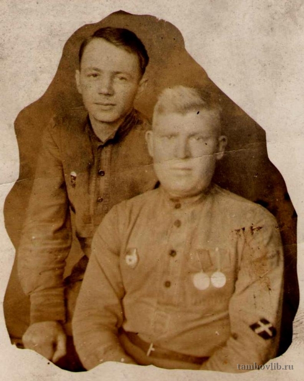 Горбунов Степан Федорович - участник Великой Отечественной войны. Родился в 1917 году в с. Моршань-Ляда Инжавинского района. Призван в армию в 1940 году. Воевал в составе Центрального, 1 Украинского, 4 Украинского фронтов. Гвардии рядовой. Был автоматчиком. Горбунов С. Ф. трижды был ранен. Награжден медалями "За боевые заслуги", "За отвагу". Демобилизован в 1945 году. Фотография из семейного архива дочери, жительницы р. п. Инжавино Ямщиковой Валентины Степановны.16 февраля 1945 Межпоселенческая центральная библиотека Инжавинского района Портрет
