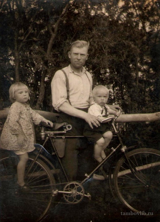 Горбунов Степан Федорович - участник Великой Отечественной войны с сыном Колей и дочерью Машей. Жители с. Моршань-Ляда Инжавинского района.1950 Межпоселенческая центральная библиотека Инжавинского района Семейное