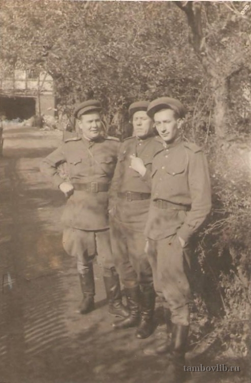 Родился 30 марта 1912 г. в с. Осино-Лозовка Сампурского района Тамбовской области. С 1942 г. по 1944 г. был на Волховском, Ленинградском и Прибалтийском фронтах командиром взвода снабжения. Награжден орденом «Красной звезды», орденом «Отечественной войны I степени», медалью «За Отвагу», медалью «За освобождение Варшавы», медалью «За освобождение Германии в ВОВ в 1941-1945 гг.». Умер в 1982 г. На фото Казадаев Ефим Дмитриевич слева, справа Шустер Эдуард Ульянович.Добавлена 20 Марта 2015